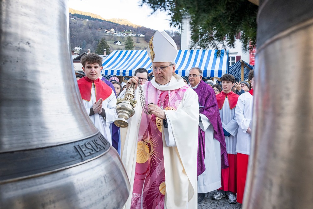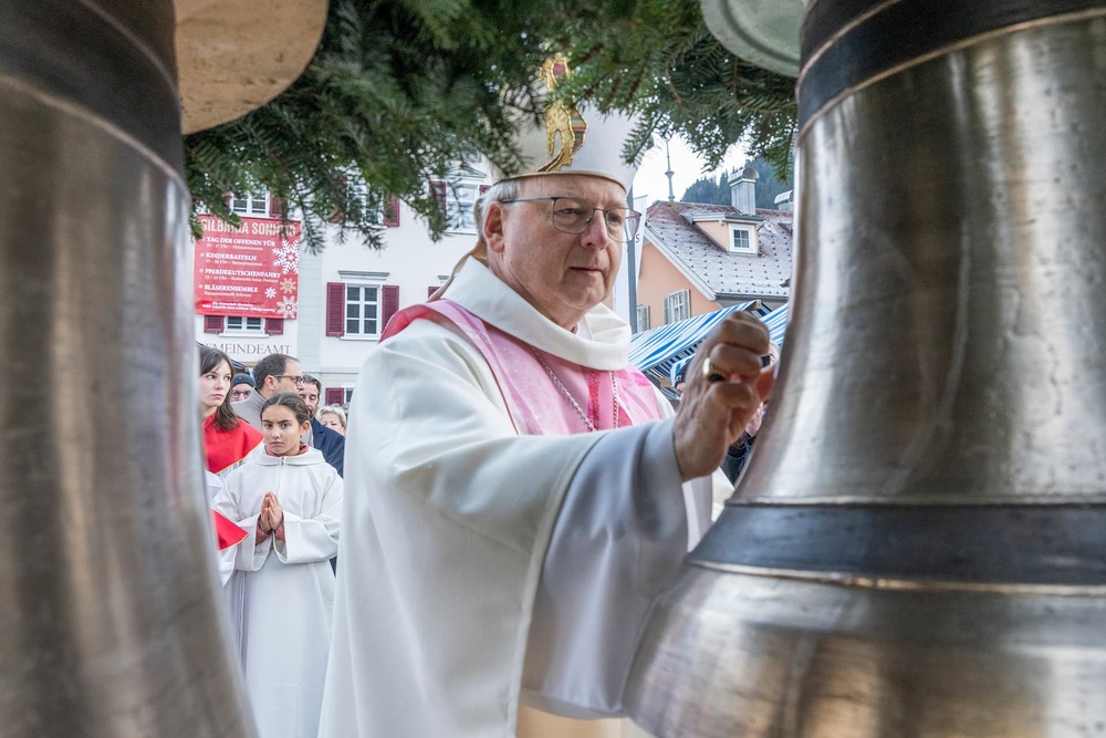 Am „Silbriga Sonntig“, den 14. Dezember 2025, fand auf dem Kirchplatz Schruns bei strahlendem Sonnenschein die feierliche Weihe der neuen Glocken durch Bischof Benno Elbs statt.