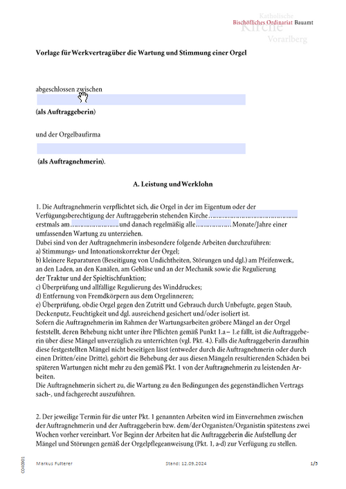 Vorlage Wartungsvertrag Orgeln